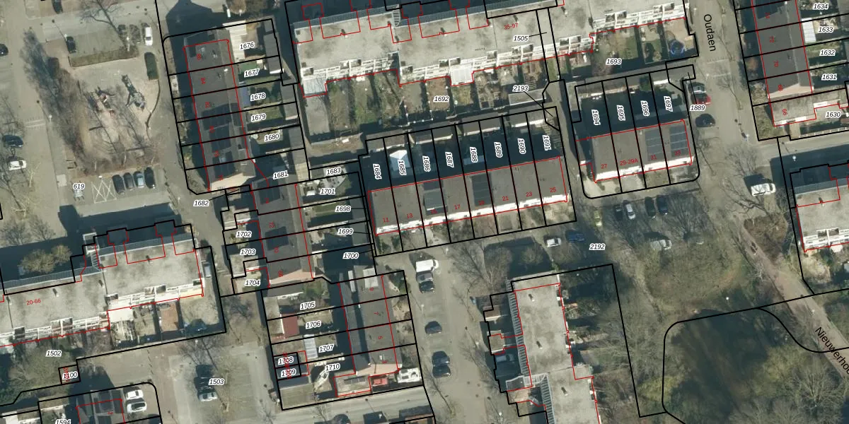 Het perceel waarop Oudaen 15 staat heeft een oppervlakte van 156 m². Dit is een middelgroot perceel. De perceeloppervlakte wordt geregistreerd door het Kadaster. Gedetailleerde informatie over de maten van dit perceel kunt u vinden in het rapport Kadastrale kaart met maatvoering van Oudaen 15.