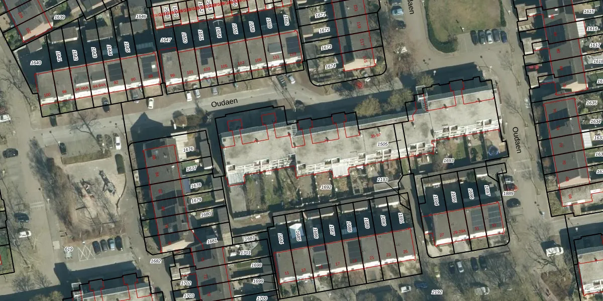Het perceel waarop Oudaen 49 staat heeft een oppervlakte van 1878 m². Dit is een zeer groot perceel. De perceeloppervlakte wordt geregistreerd door het Kadaster. Gedetailleerde informatie over de maten van dit perceel kunt u vinden in het rapport Kadastrale kaart met maatvoering van Oudaen 49.