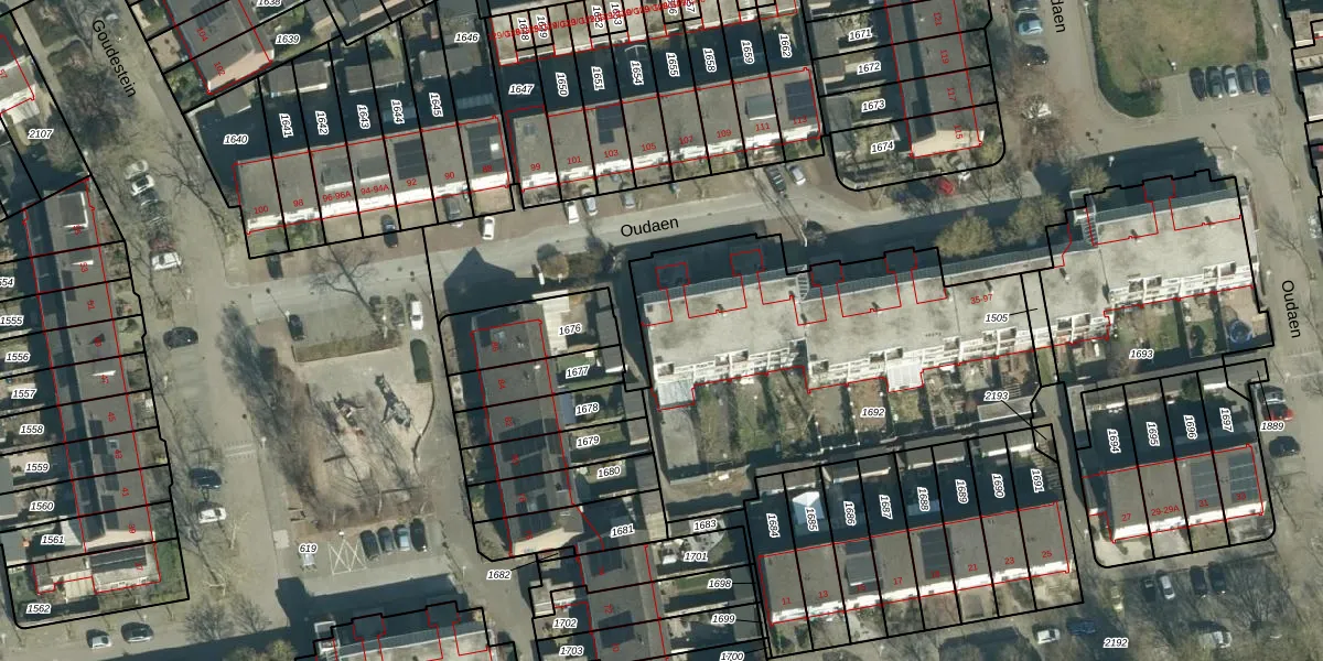 Het perceel waarop Oudaen 57 staat heeft een oppervlakte van 1878 m². Dit is een zeer groot perceel. De perceeloppervlakte wordt geregistreerd door het Kadaster. Gedetailleerde informatie over de maten van dit perceel kunt u vinden in het rapport Kadastrale kaart met maatvoering van Oudaen 57.