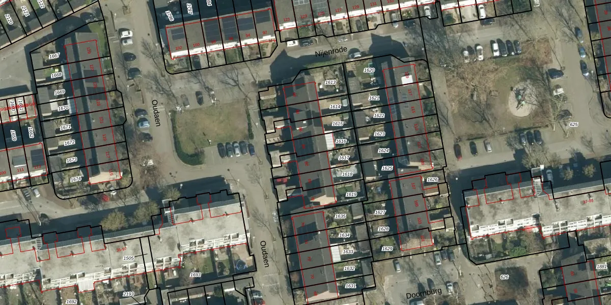 Het perceel waarop Oudaen 84 staat heeft een oppervlakte van 165 m². Dit is een middelgroot perceel. De perceeloppervlakte wordt geregistreerd door het Kadaster. Gedetailleerde informatie over de maten van dit perceel kunt u vinden in het rapport Kadastrale kaart met maatvoering van Oudaen 84.