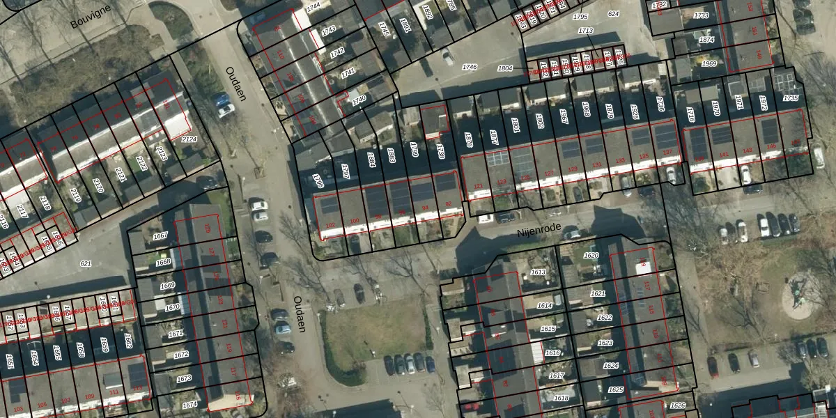 Het perceel waarop Oudaen 94 staat heeft een oppervlakte van 195 m². Dit is een middelgroot perceel. De perceeloppervlakte wordt geregistreerd door het Kadaster. Gedetailleerde informatie over de maten van dit perceel kunt u vinden in het rapport Kadastrale kaart met maatvoering van Oudaen 94.