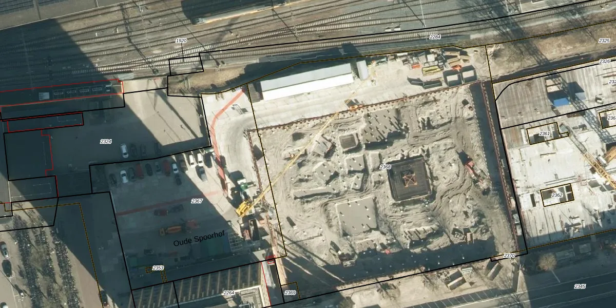 Het perceel waarop Oude Spoorhof 101-126 staat heeft een oppervlakte van 5621 m². Dit is een zeer groot perceel. De perceeloppervlakte wordt geregistreerd door het Kadaster. Gedetailleerde informatie over de maten van dit perceel kunt u vinden in het rapport Kadastrale kaart met maatvoering van Oude Spoorhof 101-126.