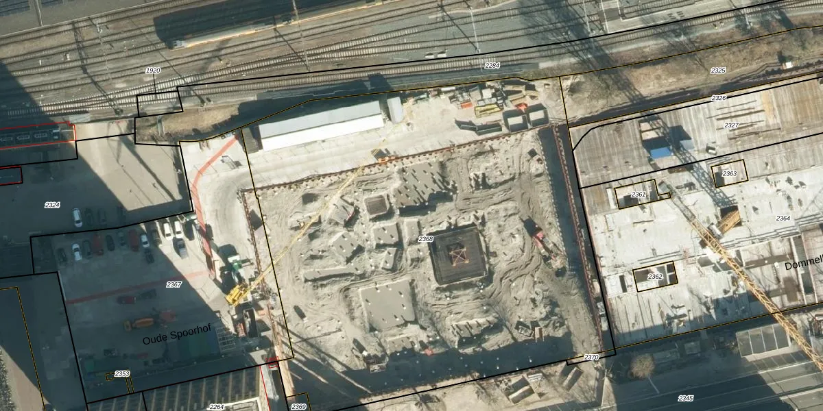 Het perceel waarop Oude Spoorhof 101-163 staat heeft een oppervlakte van 5621 m². Dit is een zeer groot perceel. De perceeloppervlakte wordt geregistreerd door het Kadaster. Gedetailleerde informatie over de maten van dit perceel kunt u vinden in het rapport Kadastrale kaart met maatvoering van Oude Spoorhof 101-163.