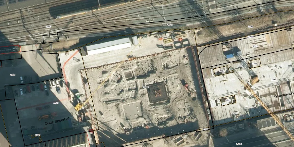 Het perceel waarop Oude Spoorhof 101-165 staat heeft een oppervlakte van 5621 m². Dit is een zeer groot perceel. De perceeloppervlakte wordt geregistreerd door het Kadaster. Gedetailleerde informatie over de maten van dit perceel kunt u vinden in het rapport Kadastrale kaart met maatvoering van Oude Spoorhof 101-165.