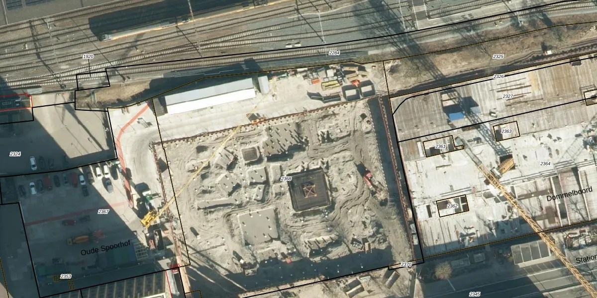 Het perceel waarop Oude Spoorhof 101-167 staat heeft een oppervlakte van 5621 m². Dit is een zeer groot perceel. De perceeloppervlakte wordt geregistreerd door het Kadaster. Gedetailleerde informatie over de maten van dit perceel kunt u vinden in het rapport Kadastrale kaart met maatvoering van Oude Spoorhof 101-167.