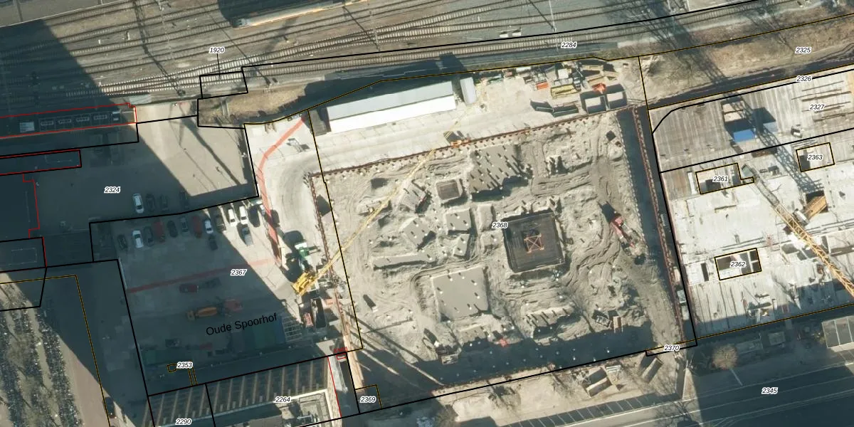 Het perceel waarop Oude Spoorhof 101-180 staat heeft een oppervlakte van 5621 m². Dit is een zeer groot perceel. De perceeloppervlakte wordt geregistreerd door het Kadaster. Gedetailleerde informatie over de maten van dit perceel kunt u vinden in het rapport Kadastrale kaart met maatvoering van Oude Spoorhof 101-180.