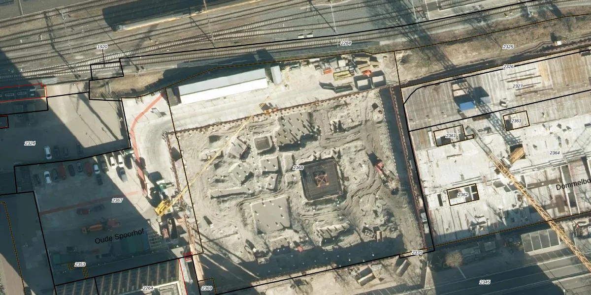 Het perceel waarop Oude Spoorhof 101-189 staat heeft een oppervlakte van 5621 m². Dit is een zeer groot perceel. De perceeloppervlakte wordt geregistreerd door het Kadaster. Gedetailleerde informatie over de maten van dit perceel kunt u vinden in het rapport Kadastrale kaart met maatvoering van Oude Spoorhof 101-189.