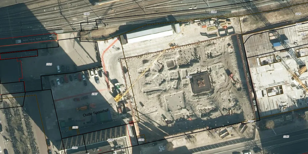Het perceel waarop Oude Spoorhof 101-009 staat heeft een oppervlakte van 5621 m². Dit is een zeer groot perceel. De perceeloppervlakte wordt geregistreerd door het Kadaster. Gedetailleerde informatie over de maten van dit perceel kunt u vinden in het rapport Kadastrale kaart met maatvoering van Oude Spoorhof 101-009.