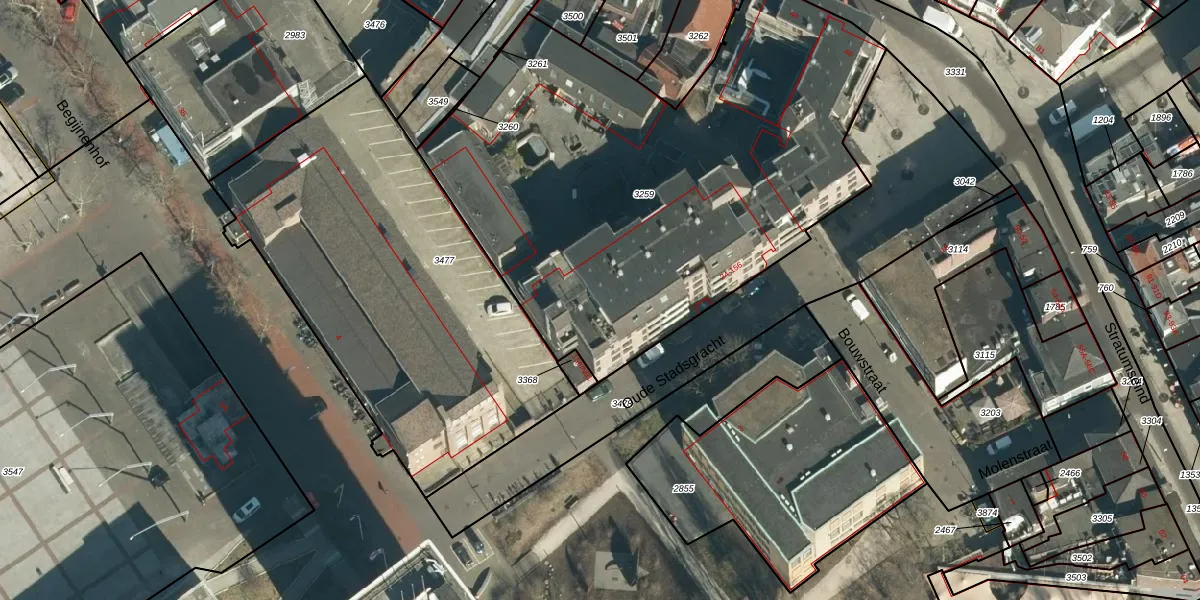 Het perceel waarop Oude Stadsgracht 102 staat heeft een oppervlakte van 2875 m². Dit is een zeer groot perceel. De perceeloppervlakte wordt geregistreerd door het Kadaster. Gedetailleerde informatie over de maten van dit perceel kunt u vinden in het rapport Kadastrale kaart met maatvoering van Oude Stadsgracht 102.