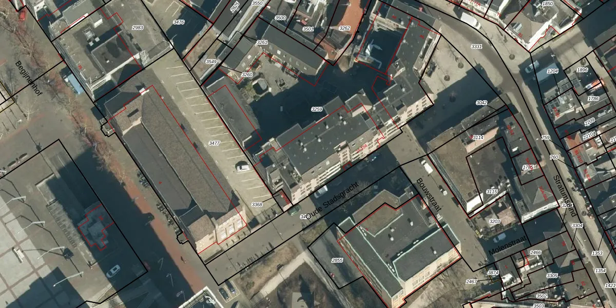 Het perceel waarop Oude Stadsgracht 106 staat heeft een oppervlakte van 2875 m². Dit is een zeer groot perceel. De perceeloppervlakte wordt geregistreerd door het Kadaster. Gedetailleerde informatie over de maten van dit perceel kunt u vinden in het rapport Kadastrale kaart met maatvoering van Oude Stadsgracht 106.