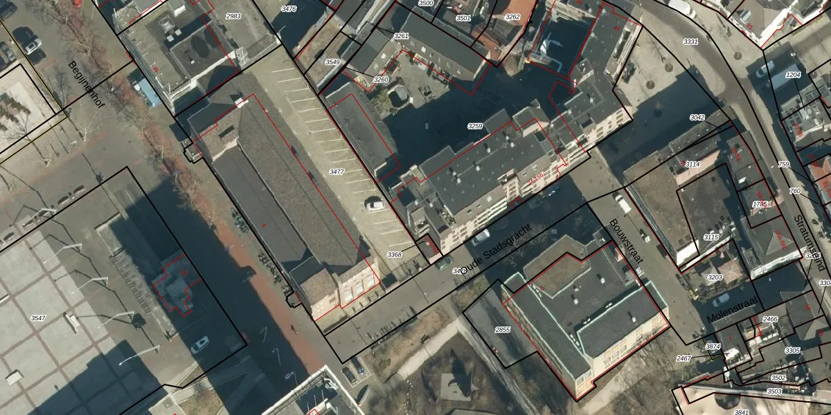Het perceel waarop Oude Stadsgracht 128 staat heeft een oppervlakte van 2875 m². Dit is een zeer groot perceel. De perceeloppervlakte wordt geregistreerd door het Kadaster. Gedetailleerde informatie over de maten van dit perceel kunt u vinden in het rapport Kadastrale kaart met maatvoering van Oude Stadsgracht 128.