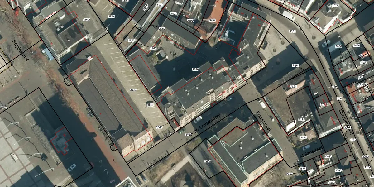 Het perceel waarop Oude Stadsgracht 138 staat heeft een oppervlakte van 2875 m². Dit is een zeer groot perceel. De perceeloppervlakte wordt geregistreerd door het Kadaster. Gedetailleerde informatie over de maten van dit perceel kunt u vinden in het rapport Kadastrale kaart met maatvoering van Oude Stadsgracht 138.