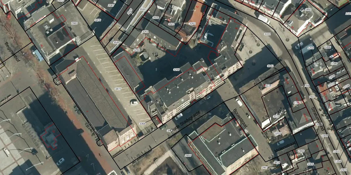 Het perceel waarop Oude Stadsgracht 142 staat heeft een oppervlakte van 2875 m². Dit is een zeer groot perceel. De perceeloppervlakte wordt geregistreerd door het Kadaster. Gedetailleerde informatie over de maten van dit perceel kunt u vinden in het rapport Kadastrale kaart met maatvoering van Oude Stadsgracht 142.