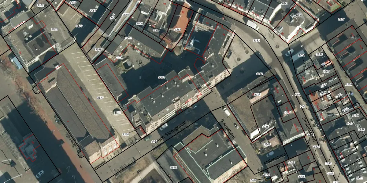 Het perceel waarop Oude Stadsgracht 88 staat heeft een oppervlakte van 2875 m². Dit is een zeer groot perceel. De perceeloppervlakte wordt geregistreerd door het Kadaster. Gedetailleerde informatie over de maten van dit perceel kunt u vinden in het rapport Kadastrale kaart met maatvoering van Oude Stadsgracht 88.