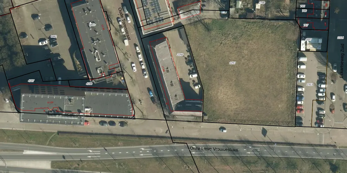 Oude Torenstraat 27 is gelegen op kadastraal perceel WSL01K2256. Deze kadastrale aanduiding is uniek en wordt gebruikt door het Kadaster om eigendomsrechten en andere zakelijke rechten vast te leggen. Het perceel maakt onderdeel uit van de kadastrale gemeente Woensel.