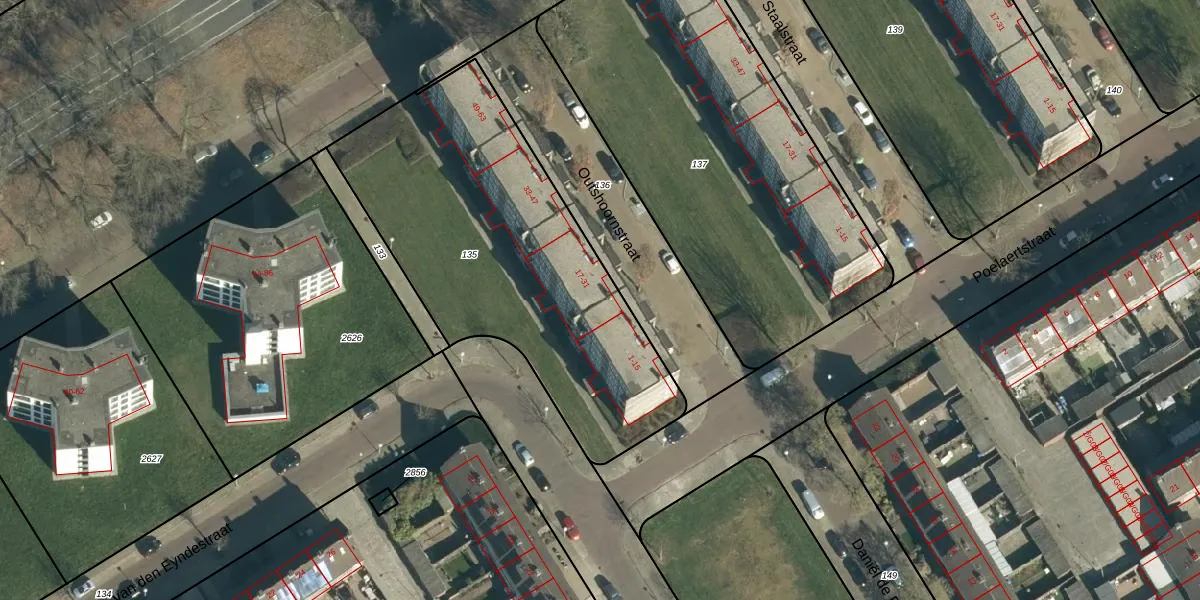 Het perceel waarop Outshoornstraat 19 staat heeft een oppervlakte van 1722 m². Dit is een zeer groot perceel. De perceeloppervlakte wordt geregistreerd door het Kadaster. Gedetailleerde informatie over de maten van dit perceel kunt u vinden in het rapport Kadastrale kaart met maatvoering van Outshoornstraat 19.