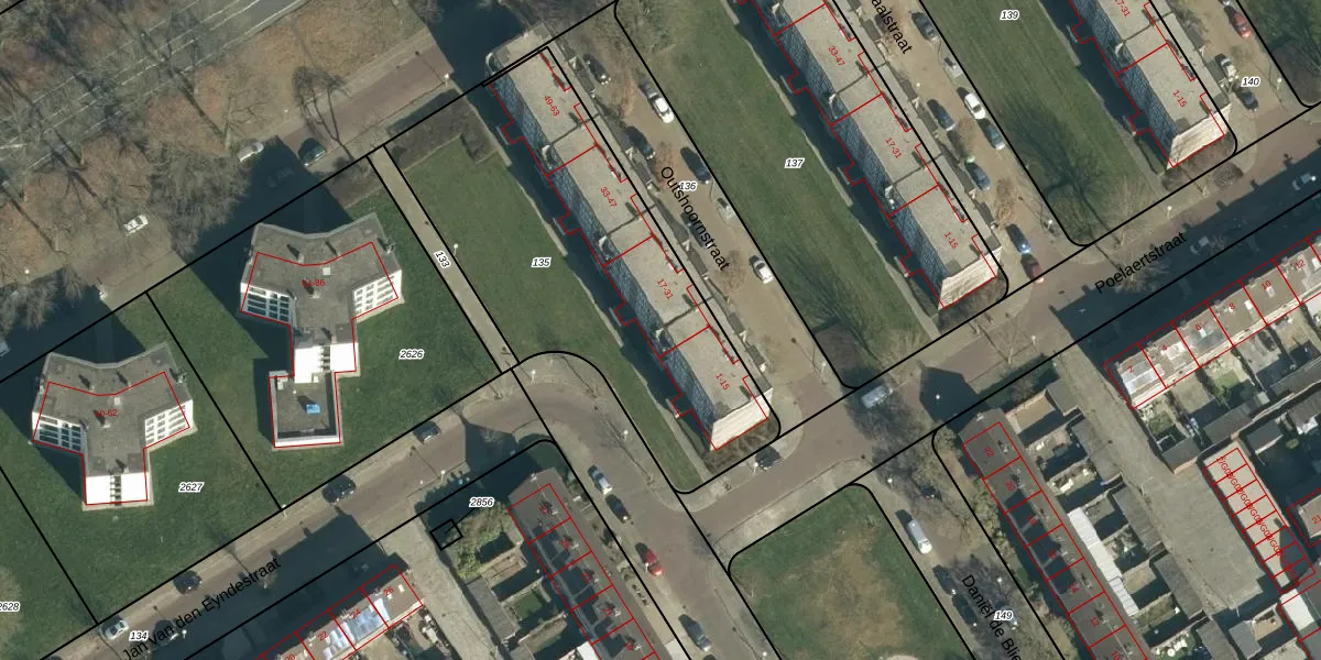 Het perceel waarop Outshoornstraat 27 staat heeft een oppervlakte van 1722 m². Dit is een zeer groot perceel. De perceeloppervlakte wordt geregistreerd door het Kadaster. Gedetailleerde informatie over de maten van dit perceel kunt u vinden in het rapport Kadastrale kaart met maatvoering van Outshoornstraat 27.