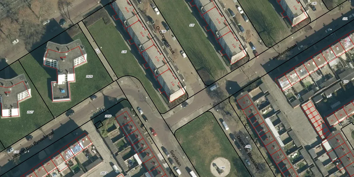 Het perceel waarop Outshoornstraat 3 staat heeft een oppervlakte van 1722 m². Dit is een zeer groot perceel. De perceeloppervlakte wordt geregistreerd door het Kadaster. Gedetailleerde informatie over de maten van dit perceel kunt u vinden in het rapport Kadastrale kaart met maatvoering van Outshoornstraat 3.