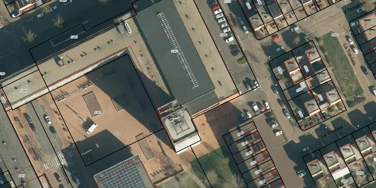 Het adres is gelegen op perceel 5382 in de sectie W en de kadastrale gemeente Woensel. De kadastrale aanduiding is aldus WSL01-W-5382. De oppervlakte van het perceel is 3844 m². Dat is groter dan gemiddeld in Woensel, waar de gemiddelde perceeloppervlakte op 1038,98 m² ligt. De grootste perceeloppervlakte in de kadastrale gemeente is 74,9 ha. De kleinste oppervlakte bedraagt 0 m². Er zijn 108 adressen aanwezig op het perceel. In de Basisregistratie Kadaster (BRK) werden de grenzen van het perceel geregistreerd op 08-06-2006.