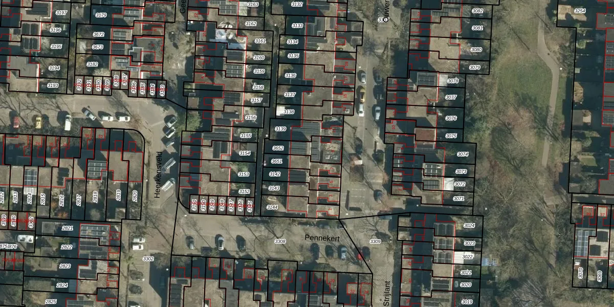 Gebruik de zoekbalk of klik op een perceel voor informatie over de adressen binnen dit perceel.
