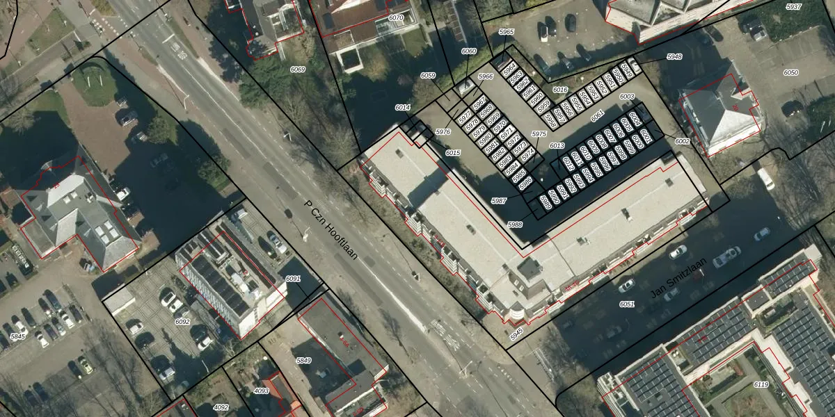Het perceel waarop P Czn Hooftlaan 21 staat heeft een oppervlakte van 1940 m². Dit is een zeer groot perceel. De perceeloppervlakte wordt geregistreerd door het Kadaster. Gedetailleerde informatie over de maten van dit perceel kunt u vinden in het rapport Kadastrale kaart met maatvoering van P Czn Hooftlaan 21.