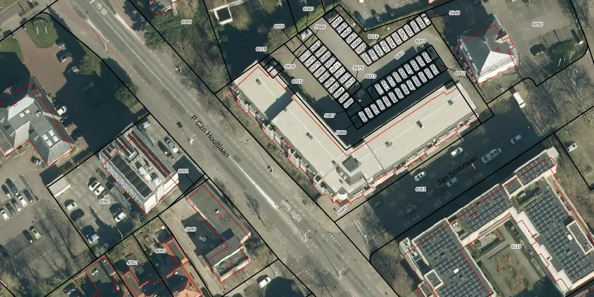 Het perceel waarop P Czn Hooftlaan 25 staat heeft een oppervlakte van 1940 m². Dit is een zeer groot perceel. De perceeloppervlakte wordt geregistreerd door het Kadaster. Gedetailleerde informatie over de maten van dit perceel kunt u vinden in het rapport Kadastrale kaart met maatvoering van P Czn Hooftlaan 25.