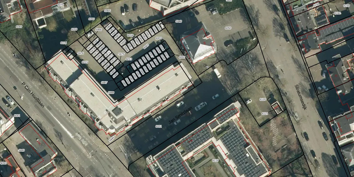 P Czn Hooftlaan 43 is gelegen op kadastraal perceel STM00A5945. Deze kadastrale aanduiding is uniek en wordt gebruikt door het Kadaster om eigendomsrechten en andere zakelijke rechten vast te leggen. Het perceel maakt onderdeel uit van de kadastrale gemeente Stratum.