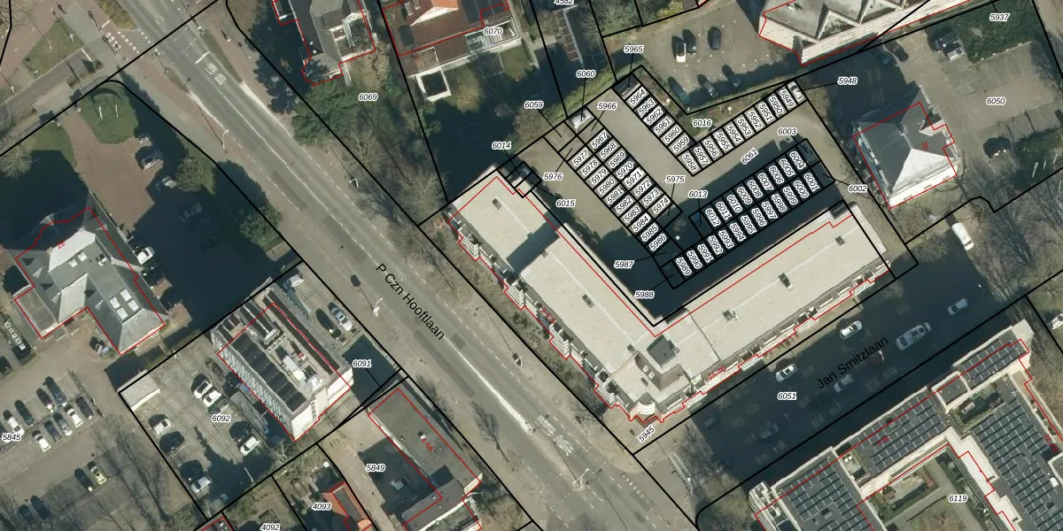 Het perceel waarop P Czn Hooftlaan 51 staat heeft een oppervlakte van 1940 m². Dit is een zeer groot perceel. De perceeloppervlakte wordt geregistreerd door het Kadaster. Gedetailleerde informatie over de maten van dit perceel kunt u vinden in het rapport Kadastrale kaart met maatvoering van P Czn Hooftlaan 51.