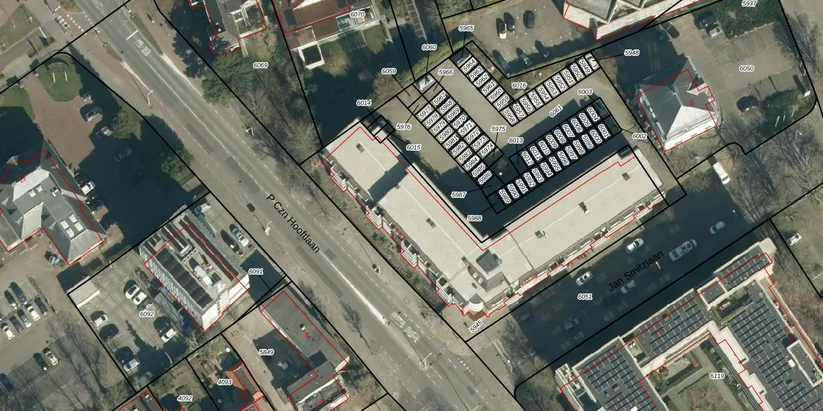 Het perceel waarop P Czn Hooftlaan 83 staat heeft een oppervlakte van 1940 m². Dit is een zeer groot perceel. De perceeloppervlakte wordt geregistreerd door het Kadaster. Gedetailleerde informatie over de maten van dit perceel kunt u vinden in het rapport Kadastrale kaart met maatvoering van P Czn Hooftlaan 83.