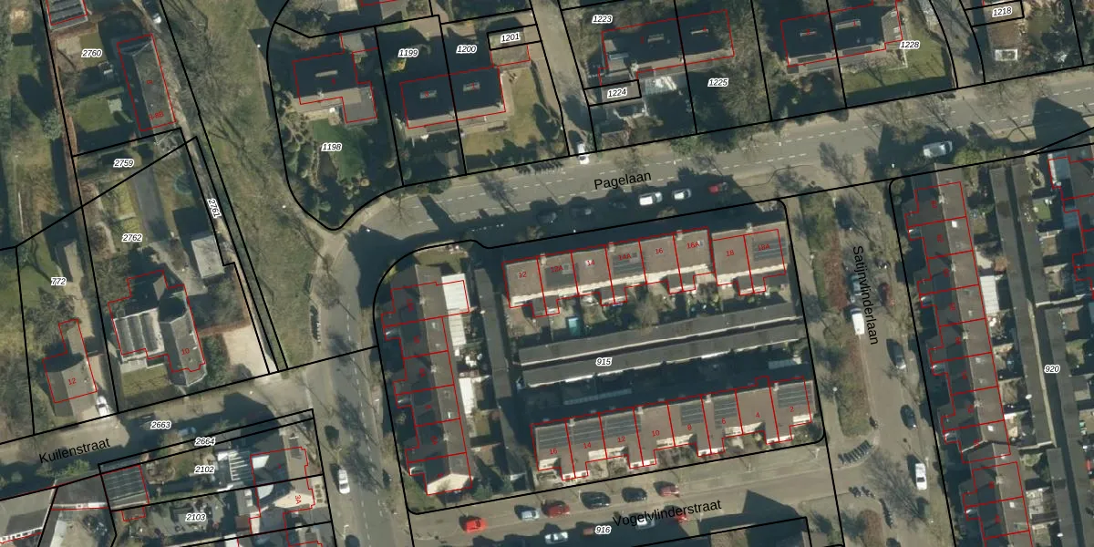 Het perceel waarop Pagelaan 12-A staat heeft een oppervlakte van 3535 m². Dit is een zeer groot perceel. De perceeloppervlakte wordt geregistreerd door het Kadaster. Gedetailleerde informatie over de maten van dit perceel kunt u vinden in het rapport Kadastrale kaart met maatvoering van Pagelaan 12-A.