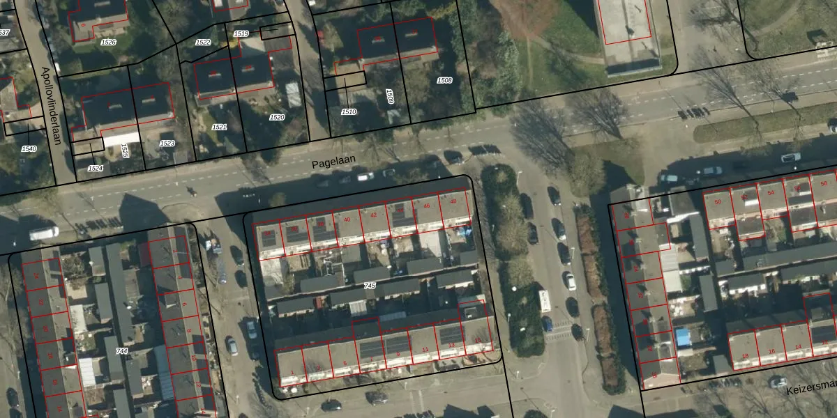 Het perceel waarop Pagelaan 46 staat heeft een oppervlakte van 2519 m². Dit is een zeer groot perceel. De perceeloppervlakte wordt geregistreerd door het Kadaster. Gedetailleerde informatie over de maten van dit perceel kunt u vinden in het rapport Kadastrale kaart met maatvoering van Pagelaan 46.