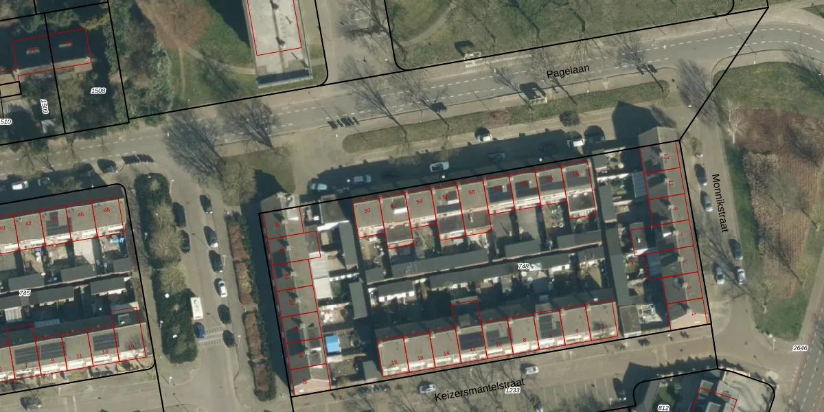Pagelaan 54 is gelegen op kadastraal perceel TGR00G748. Deze kadastrale aanduiding is uniek en wordt gebruikt door het Kadaster om eigendomsrechten en andere zakelijke rechten vast te leggen. Het perceel maakt onderdeel uit van de kadastrale gemeente Tongelre.