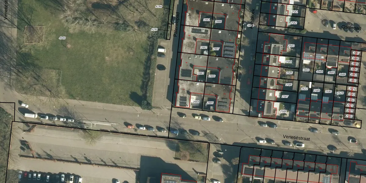 Het perceel waarop Palermopad 2 staat heeft een oppervlakte van 259 m². Dit is een middelgroot perceel. De perceeloppervlakte wordt geregistreerd door het Kadaster. Gedetailleerde informatie over de maten van dit perceel kunt u vinden in het rapport Kadastrale kaart met maatvoering van Palermopad 2.