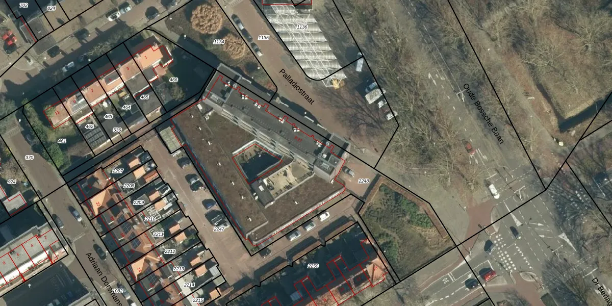 Palladiostraat 21 is gelegen op kadastraal perceel WSL01H2248. Deze kadastrale aanduiding is uniek en wordt gebruikt door het Kadaster om eigendomsrechten en andere zakelijke rechten vast te leggen. Het perceel maakt onderdeel uit van de kadastrale gemeente Woensel.