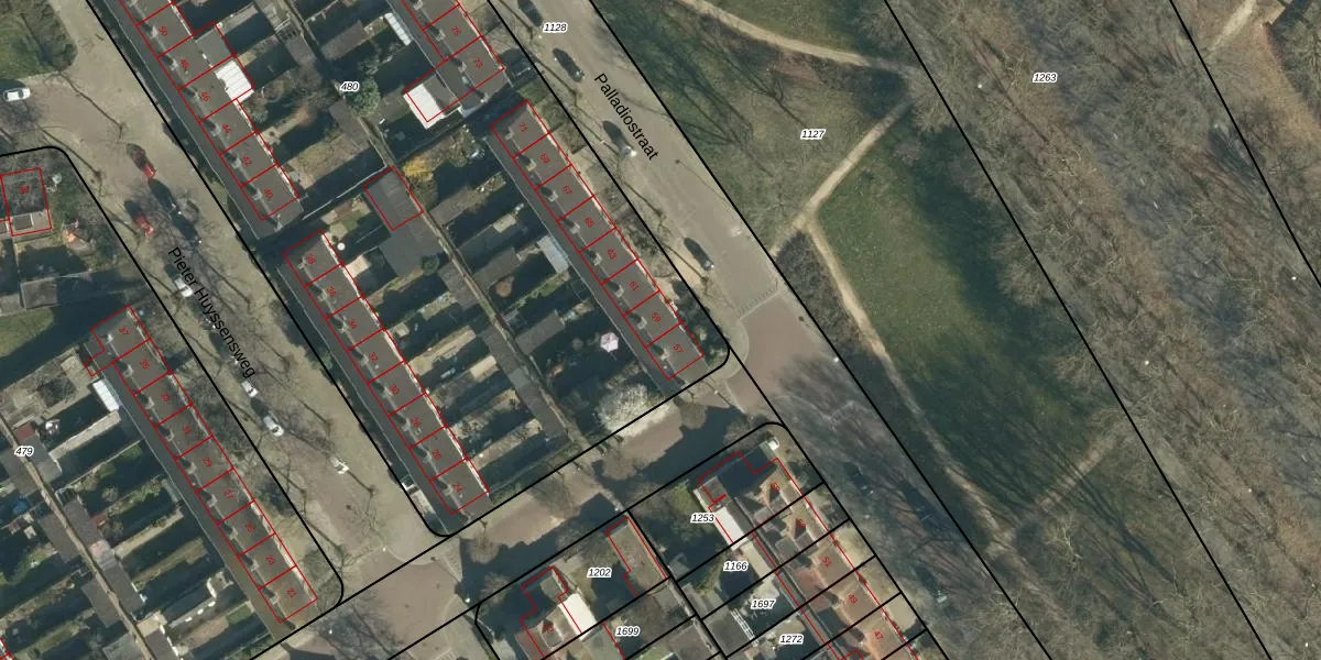 Het perceel waarop Palladiostraat 59 staat heeft een oppervlakte van 6855 m². Dit is een zeer groot perceel. De perceeloppervlakte wordt geregistreerd door het Kadaster. Gedetailleerde informatie over de maten van dit perceel kunt u vinden in het rapport Kadastrale kaart met maatvoering van Palladiostraat 59.