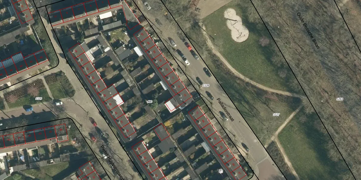 Palladiostraat 75 is gelegen op kadastraal perceel WSL01H480. Deze kadastrale aanduiding is uniek en wordt gebruikt door het Kadaster om eigendomsrechten en andere zakelijke rechten vast te leggen. Het perceel maakt onderdeel uit van de kadastrale gemeente Woensel.