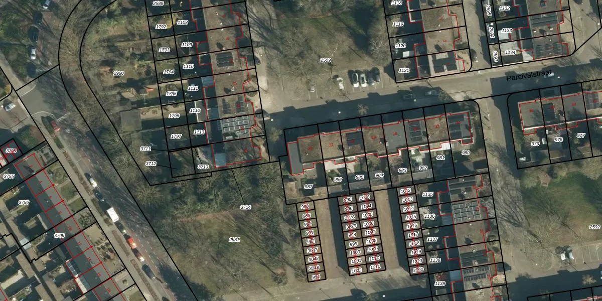Parcivalstraat 20 is gelegen op kadastraal perceel WSL01P987. Deze kadastrale aanduiding is uniek en wordt gebruikt door het Kadaster om eigendomsrechten en andere zakelijke rechten vast te leggen. Het perceel maakt onderdeel uit van de kadastrale gemeente Woensel.