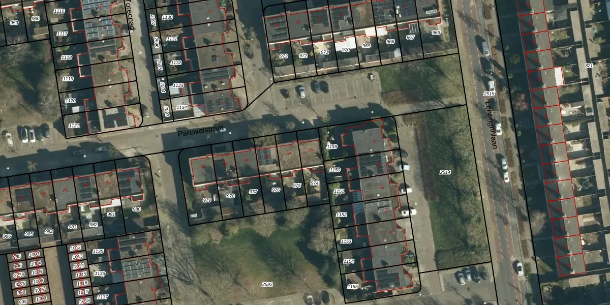 Parcivalstraat 46 is gelegen op kadastraal perceel WSL01P974. Deze kadastrale aanduiding is uniek en wordt gebruikt door het Kadaster om eigendomsrechten en andere zakelijke rechten vast te leggen. Het perceel maakt onderdeel uit van de kadastrale gemeente Woensel.
