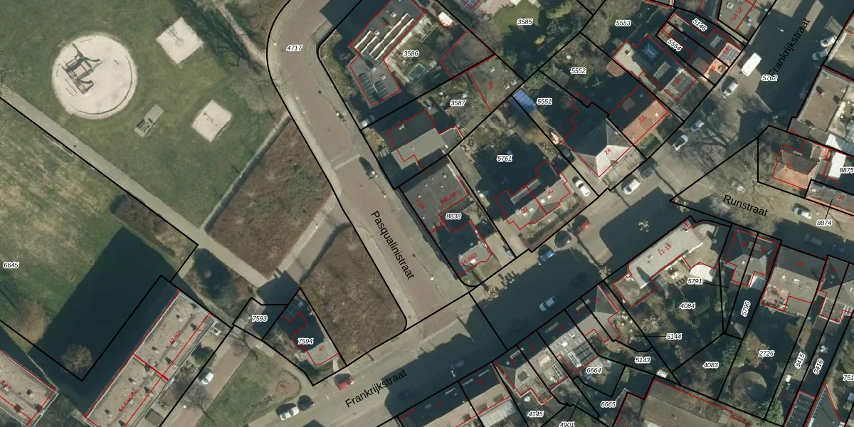 Het perceel waarop Pasqualinistraat 2 staat heeft een oppervlakte van 405 m². Dit is een groot perceel. De perceeloppervlakte wordt geregistreerd door het Kadaster. Gedetailleerde informatie over de maten van dit perceel kunt u vinden in het rapport Kadastrale kaart met maatvoering van Pasqualinistraat 2.