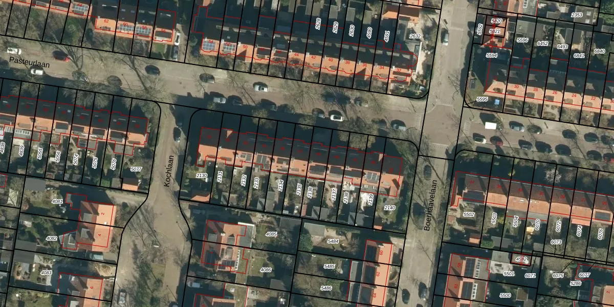 Gebruik de zoekbalk of klik op een perceel voor informatie over de adressen binnen dit perceel.