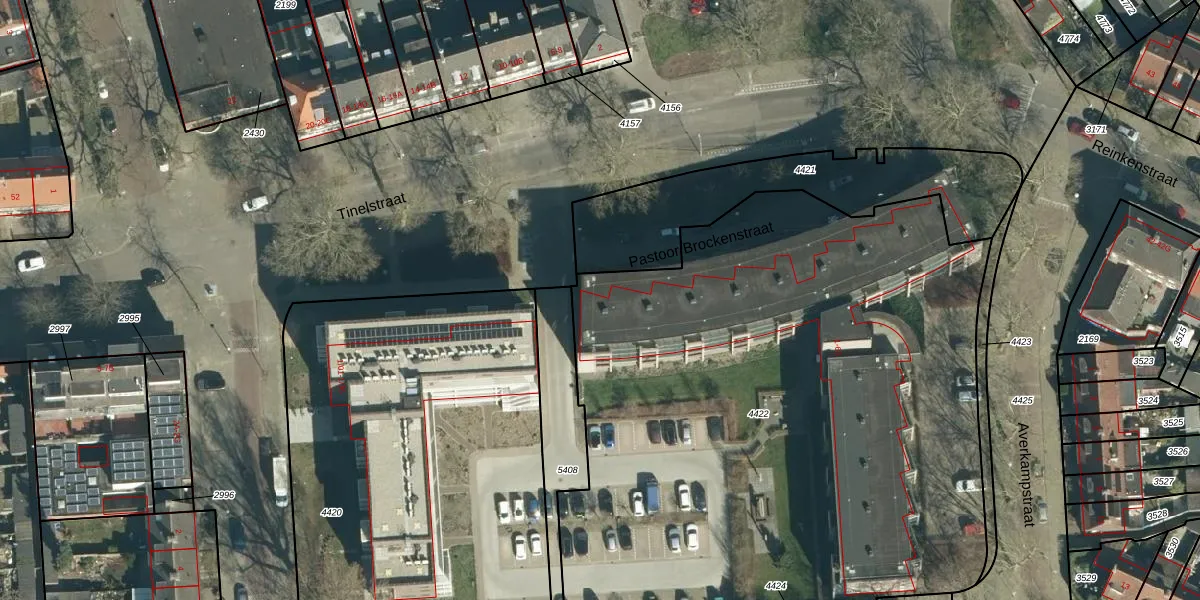 Het perceel waarop Pastoor Brockenstraat 8 staat heeft een oppervlakte van 4443 m². Dit is een zeer groot perceel. De perceeloppervlakte wordt geregistreerd door het Kadaster. Gedetailleerde informatie over de maten van dit perceel kunt u vinden in het rapport Kadastrale kaart met maatvoering van Pastoor Brockenstraat 8.