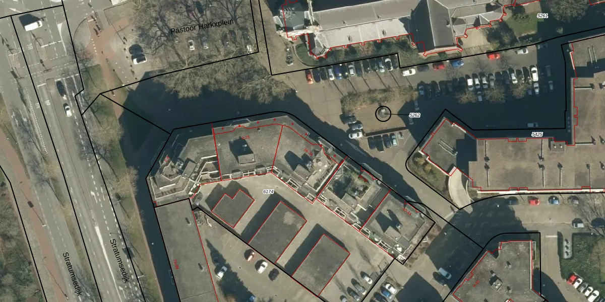 Pastoor Harkxplein 28 is gelegen op kadastraal perceel STM00D6174. Deze kadastrale aanduiding is uniek en wordt gebruikt door het Kadaster om eigendomsrechten en andere zakelijke rechten vast te leggen. Het perceel maakt onderdeel uit van de kadastrale gemeente Stratum.