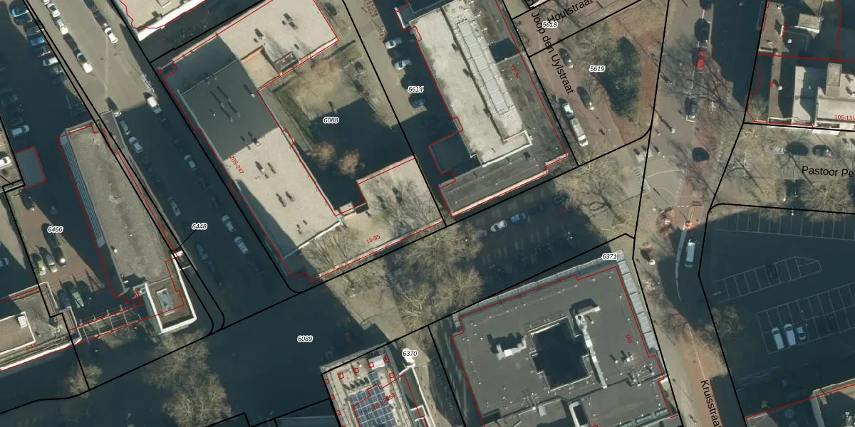 Het perceel waarop Pastoor Petersstraat 65 staat heeft een oppervlakte van 2838 m². Dit is een zeer groot perceel. De perceeloppervlakte wordt geregistreerd door het Kadaster. Gedetailleerde informatie over de maten van dit perceel kunt u vinden in het rapport Kadastrale kaart met maatvoering van Pastoor Petersstraat 65.