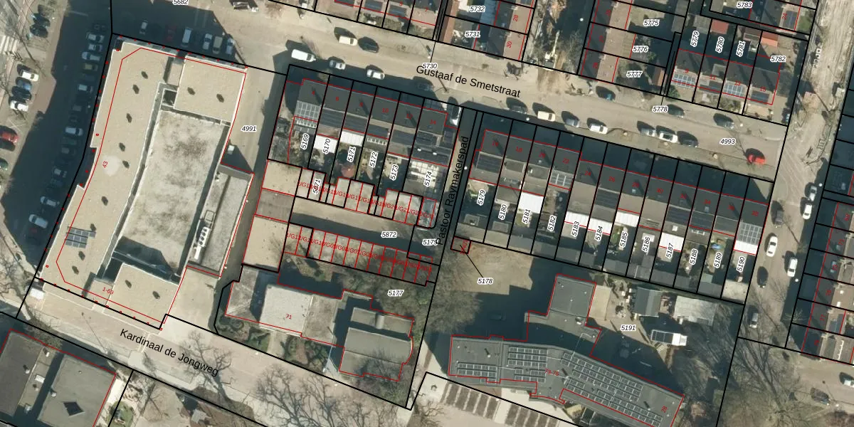 Pastoor Raymakerspad 1-G23 is gelegen op kadastraal perceel STM00E5174. Deze kadastrale aanduiding is uniek en wordt gebruikt door het Kadaster om eigendomsrechten en andere zakelijke rechten vast te leggen. Het perceel maakt onderdeel uit van de kadastrale gemeente Stratum.