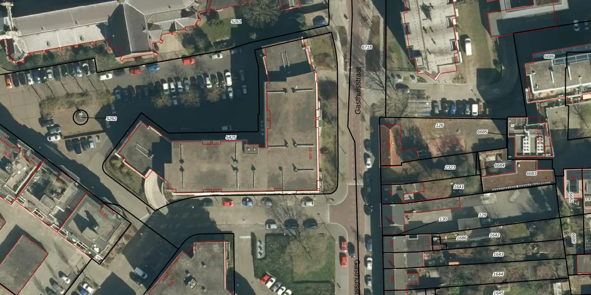 Het adres is gelegen op perceel 5425 in de sectie E en de kadastrale gemeente Stratum. De kadastrale aanduiding is aldus STM00-E-5425. Het perceel is met 2531 m² relatief groot. Het gemiddelde ligt in de kadastrale gemeente Stratum op 909,21 m². Het grootste perceel in de kadastrale gemeente is 92,9 ha. Het kleinste perceel heeft een oppervlakte van 0 m². Er zijn 63 adressen aanwezig op het perceel. De huidige grenzen van het perceel zijn digitaal in de Basisregistratie Kadaster (BRK) geregistreerd op 22-10-2007.