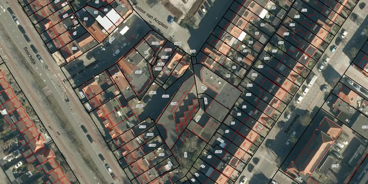 Het perceel waarop Pastoor van Arsplein 14-H staat heeft een oppervlakte van 481 m². Dit is een groot perceel. De perceeloppervlakte wordt geregistreerd door het Kadaster. Gedetailleerde informatie over de maten van dit perceel kunt u vinden in het rapport Kadastrale kaart met maatvoering van Pastoor van Arsplein 14-H.