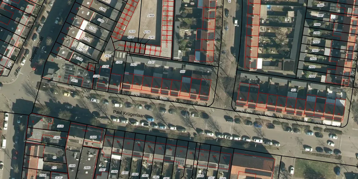 Paul Krügerlaan 76 is gelegen op kadastraal perceel TGR00E555. Deze kadastrale aanduiding is uniek en wordt gebruikt door het Kadaster om eigendomsrechten en andere zakelijke rechten vast te leggen. Het perceel maakt onderdeel uit van de kadastrale gemeente Tongelre.