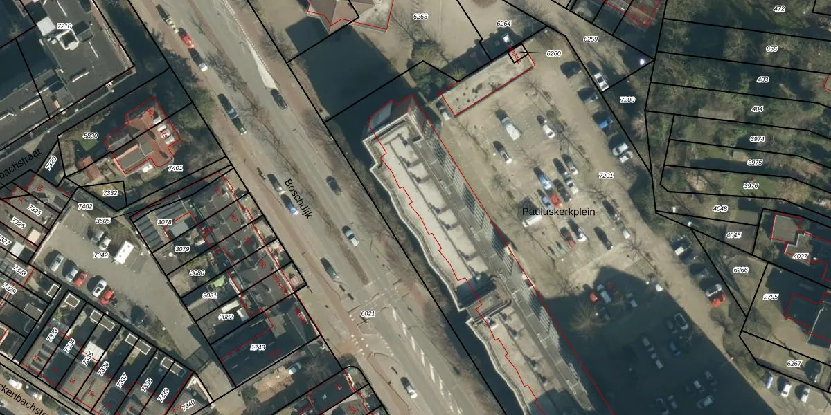 Het perceel waarop Pauluskerkplein 105 staat heeft een oppervlakte van 8290 m². Dit is een zeer groot perceel. De perceeloppervlakte wordt geregistreerd door het Kadaster. Gedetailleerde informatie over de maten van dit perceel kunt u vinden in het rapport Kadastrale kaart met maatvoering van Pauluskerkplein 105.