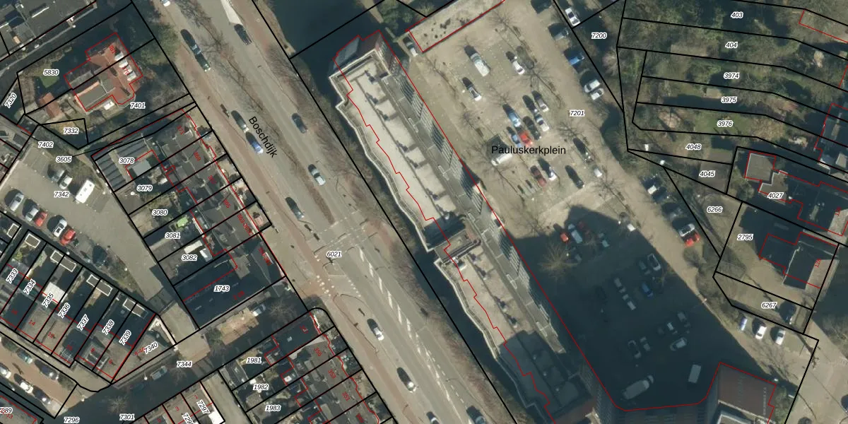 Het perceel waarop Pauluskerkplein 108 staat heeft een oppervlakte van 8290 m². Dit is een zeer groot perceel. De perceeloppervlakte wordt geregistreerd door het Kadaster. Gedetailleerde informatie over de maten van dit perceel kunt u vinden in het rapport Kadastrale kaart met maatvoering van Pauluskerkplein 108.