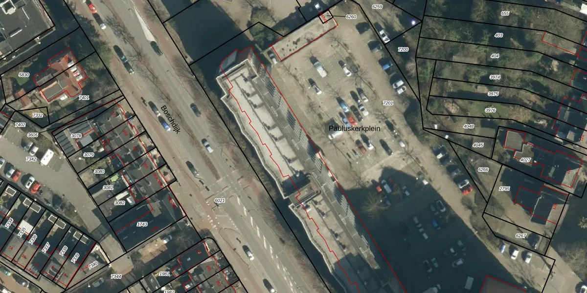 Het perceel waarop Pauluskerkplein 86 staat heeft een oppervlakte van 8290 m². Dit is een zeer groot perceel. De perceeloppervlakte wordt geregistreerd door het Kadaster. Gedetailleerde informatie over de maten van dit perceel kunt u vinden in het rapport Kadastrale kaart met maatvoering van Pauluskerkplein 86.